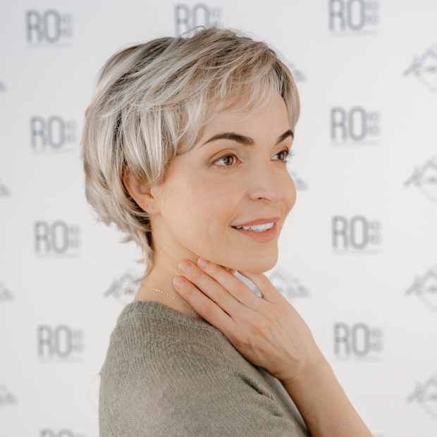 Modell Beryl ist eine Perücke aus synthetischem Haar, das auf einer Montur verarbeitet ist, die sich durch maschinelle Verarbeitung auf Tressen, eine Monofilament-Oberkopfpartie sowie einen fein gearbeiteten Filmansatz an der Vorderseite auszeichnet. Die speziellen Synthetikfasern imitieren echtes Haar täuschend echt.