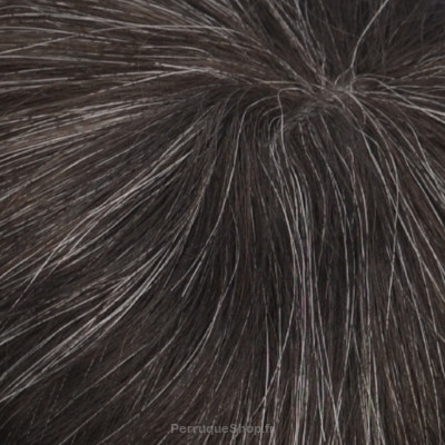 Herrentoupet aus hochwertigem Remy-Haar mit natürlicher Dichte. Das graue Haar in dieser Farbe ist Kunsthaar mit erhöhter Hitzebeständigkeit — bis zu 130°C.