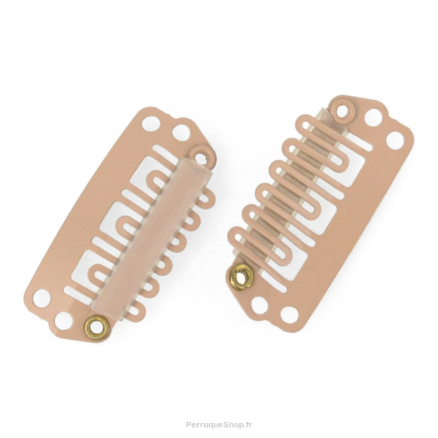 Mittlerer Clip für SecondHair-Systeme und Haarteile, symmetrisch - 1 Stück. Es hat abgerundete Haltezähne (Wellenform) und ein Sicherungsgummi (Schließen bequemer und leiser).