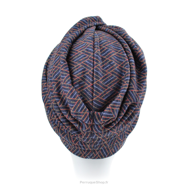 Ein wärmeres Turban-Modell, das den Retro-Stil aufgreift, indem der Stoff in einem umgekehrten "V" über der Stirn gerafft ist. Er hat eine leicht verlängerte Form und viele Falten, die für Volumen sorgen.