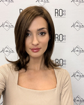 Sie bildet eine unscharfe Linie an der Vorderseite, um ein natürliches Aussehen zu erzielen (das Haar sieht aus, als würde es aus der Kopfhaut wachsen). Dank der Mikrohaut auf dem Oberkopf ist die Haut zwischen den Haaren sichtbar. Das Haar am Rand, wo sich das Tüllnetz befindet, ist etwas weniger gewebt, damit der Übergang vom Oberkopf zum Rand der Onyx Teilperücke aus Kunsthaar so natürlich wie möglich aussieht.
