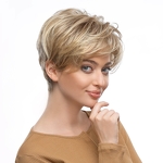 Die Kunsthaarperücke Pie wird aus einer speziellen Faser hergestellt, die echtes Haar perfekt imitiert und eine erhöhte Hitzebeständigkeit aufweist. Die Frisur ist pflegeleicht, formbeständig und muss nicht modelliert werden