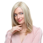 Diese Lösungen führen gleichzeitig zu einer Reihe von erwünschten Effekten: einfache Befestigung des Toppers am Kopf mit Clips, ein sehr natürliches Aussehen (Haut sichtbar am Oberkopf, Möglichkeit, die Stirn freizulegen und das Haar nach oben zu kämmen) und die Möglichkeit, die Frisur bei Temperaturen von bis zu 130 °C zu modellieren.