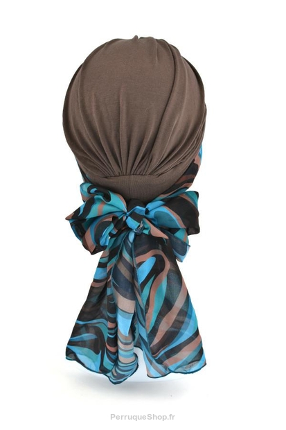 Turban mit einem langen, dekorativen Band in sehr hübschen Mustern. Das bunte Band bietet viele Stylingmöglichkeiten. Der Turban selbst ist reichlich gerafft, was für optisches Volumen sorgt.