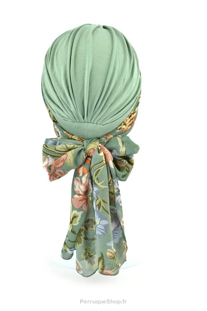 Turban mit einem langen, dekorativen Band in sehr hübschen Mustern. Das bunte Band bietet viele Stylingmöglichkeiten. Der Turban selbst ist reichlich gerafft, was für optisches Volumen sorgt.