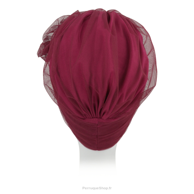 Bella ist ein interessanter Turban, der seine Form aus dem Retrostil bezieht. Die Kappe ist an der Außenseite mit einem luftigen Netz überzogen, das optisches Volumen verleiht. Die Vorderseite des Turbans ist mit einer dekorativen Stoffblume versehen.