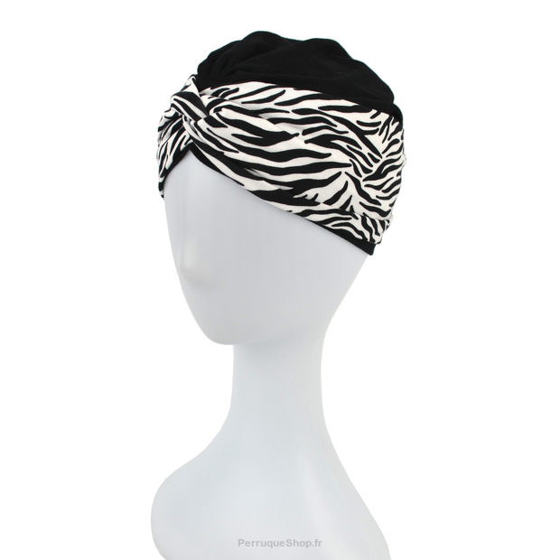 Ein leichter, alltagstauglicher Turban mit einem dekorativen Band. Die Drapierung über der Stirn verleiht eine klassische Form und vergrößert die Kopfbedeckung optisch. Das ausgefallene Muster des Bands bringt das Styling zum Leben.