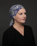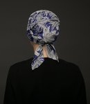 Ein einfach zu stylender, leichter und bequemer Turban in Form eines Tuchs. Er hat zarte Drapierungen an den Seiten und kurze Bänder zum Binden auf der Rückseite. Er ist aus natürlichen Materialien gefertigt.