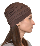 Der Turban hat eine dekorative Drapierung des Stoffes, die ihm ein originelles Aussehen verleiht. Er verleiht viel Volumen und ist bequem.