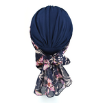 Nichts hindert Sie daran, diese Kopfbedeckung im Alltag allein zu tragen. Optisch gewinnt der Turban jedoch deutlich, wenn er mit einer der Bänder gebunden wird. Der Stoffstrang kann auf verschiedene Arten am Rücken gebunden werden. Die gängigsten sind der Knoten und die Schleife. Sie können das Band auch andersherum binden und eine dekorative Schleife auf die Stirn legen.
