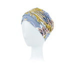 Leichter, luftiger Turban mit einem ausdrucksstarken, abstrakten Muster. Das elastische Material drückt auch nach stundenlangem Tragen nicht auf den Kopf.
