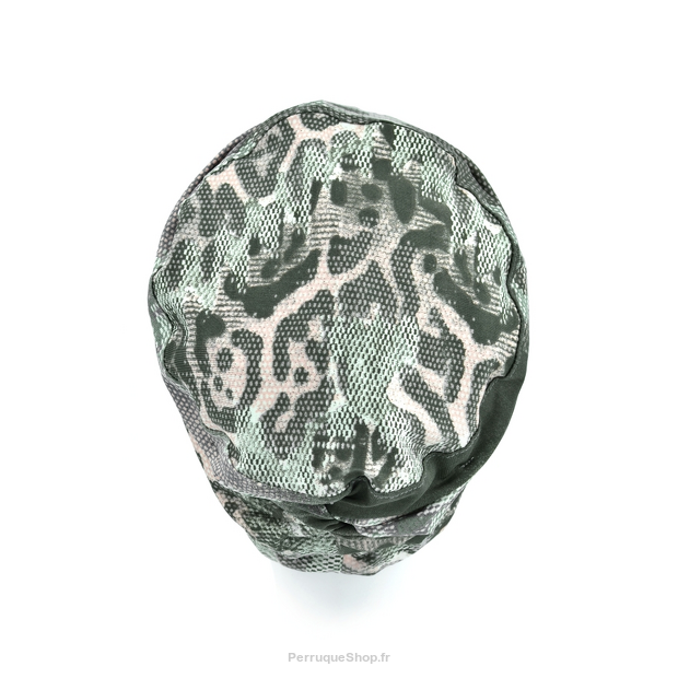 Die Stoffstreifen des Turbans sind rund um den gesamten Kopf reichlich gerafft und vergrößern die Kopfbedeckung optisch.