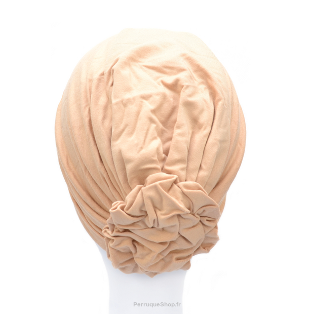 Das dekorative Element des Turbans ist die drapierte Rose am Rücken, zu der sanfte Drapierungen führen. Der Turban sieht elegant aus, ist bequem und einfach perfekt für den täglichen Gebrauch.