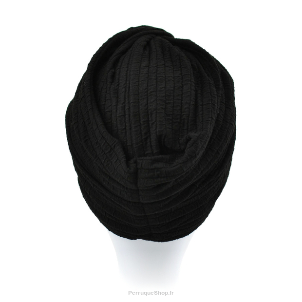 Ein wärmeres Turban-Modell, das den Retro-Stil aufgreift, indem der Stoff in einem umgekehrten "V" über der Stirn gerafft ist. Er hat eine leicht verlängerte Form und viele Falten, die für Volumen sorgen.