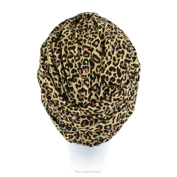 Safari ist ein Turban, der dank seines weichen Bambusfutters auch bei kühleren Temperaturen gut funktioniert. Der Stoff auf der Vorderseite des Turbans wurde leicht nach oben gerafft und dekorativ festgesteckt. Die oberste Lage dieses Modells ist großzügig gefaltet, so dass sie beim Tragen an Volumen gewinnt. Dadurch wird auch die Belüftung der Kopfhaut verbessert. Das Farbfinish ist ein unverwechselbares Leopardenfleckenmuster.