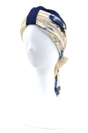 Ein einmalig interessanter Vorschlag: Sie können die Mütze solo tragen oder sie mit einem Band ergänzen, das Sie wie gewohnt hinten binden oder andersherum aufsetzen und eine Schleife über der Stirn binden.