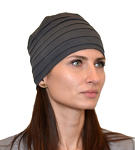 Der Turban hat horizontale dekorative Steppnähte, die an Falten erinnern. Sehr leicht und angenehm zu tragen.
