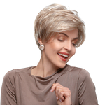 Die Farbe der angebotenen Perücke ist in dem Quadrat neben dem Hauptfoto angegeben. Die Cappuccino Large Kunsthaarperücke ist aus einer speziellen Kunstfaser gefertigt, die echtes Haar imitiert. Die Frisur ist pflegeleicht, formbeständig und muss nicht modelliert werden.