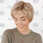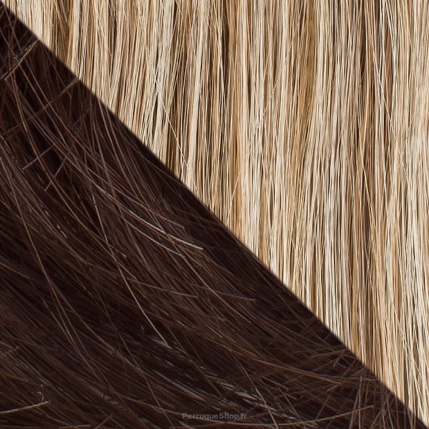Die Farbe der angebotenen Perücke ist auf dem Foto mit dem Model vor der Markenwand sowie im Farbfeld in der Bildergalerie zu sehen.