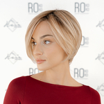 Das Model auf weißem Hintergrund trägt eine Perücke in der Farbe Nummer: 10/24/80
