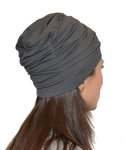 Der Turban hat eine dekorative Drapierung des Stoffes, die ihm ein originelles Aussehen verleiht. Er verleiht viel Volumen und ist bequem.