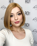Die Echthaarperücke Omari aus Virgin-Haar ist eine bequeme Bob-Frisur, die dank der hochwertigen slawischen Strähnen immer schön aussieht. Die weichen, glänzenden Strähnen wurden zu einer feinen Montur mit einer doppelten Lace-Top-Schicht verwoben. Sie sorgt für außergewöhnlichen Komfort, und außerdem erweckt die verschwommene Linie vorne den Eindruck, als würde das Haar direkt aus der Kopfhaut wachsen. So kann das Haar frei von der Stirn weggebürstet werden.