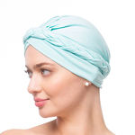 Ein einzigartiger Turban für das tägliche Tragen. Die Drapierung um den Kopf erinnert an das Binden eines Zopfes. Das Gesamtbild ist charmant und zart. Glatter, gleichmäßiger Turban aus natürlichen und elastischen Materialien. Er passt sich dem Kopf an, drückt ihn aber nicht zusammen.