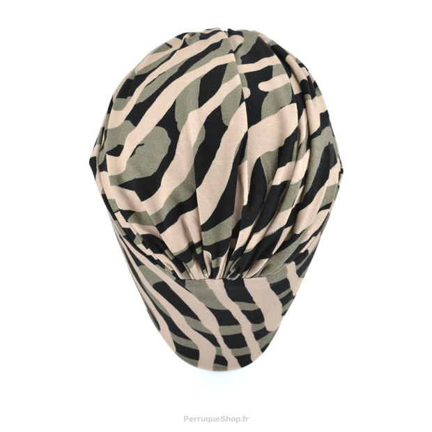 Zwei gedrehte Stoffstreifen über der Stirn sind ein kleines dekoratives Element und der Hauptvorteil dieses bequemen Turbans.