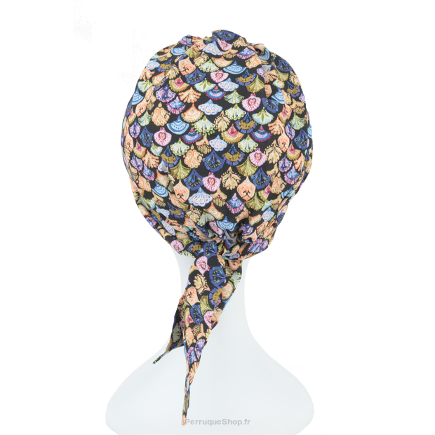 Ein leichter Turban für den täglichen Gebrauch. Er hat vorne eine dekorative Drapierung, die dem Ganzen Volumen verleiht und nicht eng am Kopf anliegt.