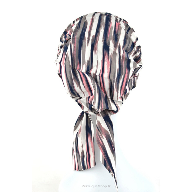 Ein Turban mit Schirm mit einer zarten Drapierung an der Seite und kurzen Bändern zum Binden. Dieser leichte und bequeme Turban ist einfach zu stylen und hat die Form eines Tuchs.