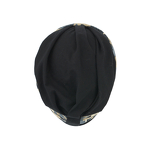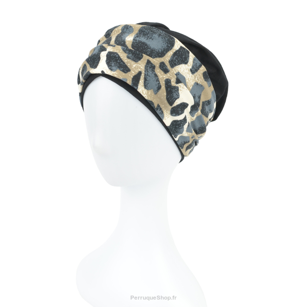 Ein klassischer Turban für den täglichen Gebrauch. Das leichte und luftige Material sorgt dafür, dass die Kopfhaut auch an sehr warmen Tagen frei atmen kann. Ein hinten festgestecktes gemustertes Band gibt Form und verleiht dem Styling Charakter.