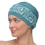 Ein klassischer Turban für den täglichen Gebrauch. Das leichte und luftige Material sorgt dafür, dass die Kopfhaut auch an sehr warmen Tagen frei atmen kann. Ein hinten festgestecktes gemustertes Band gibt Form und verleiht dem Styling Charakter.
