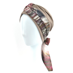 Laura ist ein interessanter Turban, der eine Reihe von Accessoires in Ihrem Kleiderschrank perfekt ergänzt. Sein klassisches Muster passt zu vielen Stylings und zu verschiedenen Anlässen. Die Mütze wird mit zwei Bändern mit bunten Mustern geliefert. Sie passen hervorragend zu dem einfarbigen Turban.