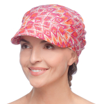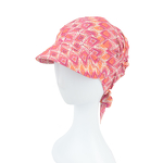 Leicht zu tragender, luftiger und bequemer Turban mit Schirm. Ideal für sonnige Tage. Zarte Drapierungen an der Seite und kurze Bänder zum Binden geben dem Turban eine interessante Form und optisches Volumen.