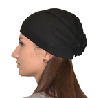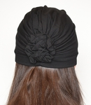Das dekorative Element des Turbans ist die drapierte Rose am Rücken, zu der sanfte Drapierungen führen. Der Turban sieht elegant aus, ist bequem und einfach perfekt für den täglichen Gebrauch.