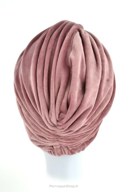 Ein wärmeres Turban-Modell, das den Retro-Stil aufgreift, indem der Stoff in einem umgekehrten "V" über der Stirn gerafft ist. Er hat eine leicht verlängerte Form und viele Falten, die für Volumen sorgen.