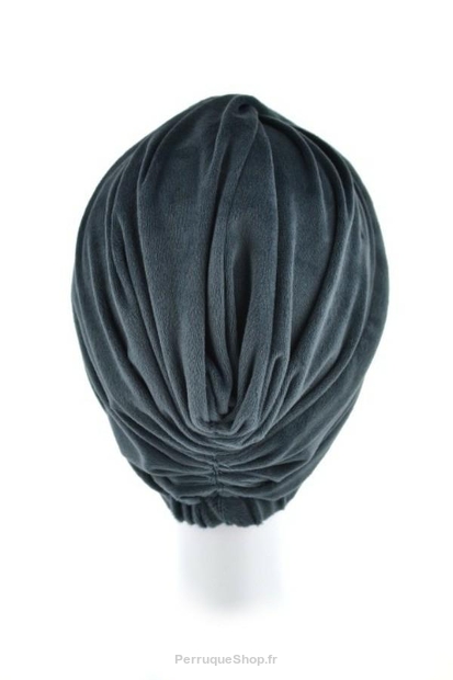 Ein wärmeres Turban-Modell, das den Retro-Stil aufgreift, indem der Stoff in einem umgekehrten "V" über der Stirn gerafft ist. Er hat eine leicht verlängerte Form und viele Falten, die für Volumen sorgen.