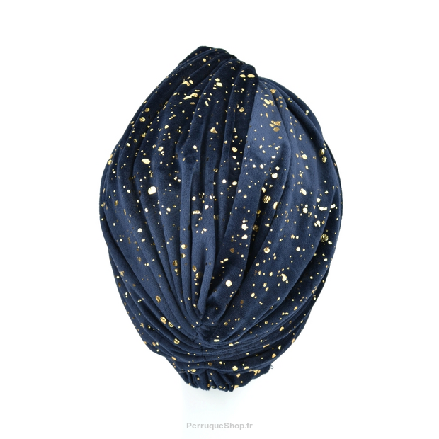 Ein wärmeres Turban-Modell, das den Retro-Stil aufgreift, indem der Stoff in einem umgekehrten "V" über der Stirn gerafft ist. Er hat eine leicht verlängerte Form und viele Falten, die für Volumen sorgen.